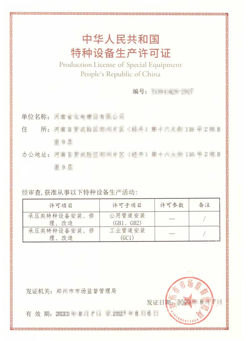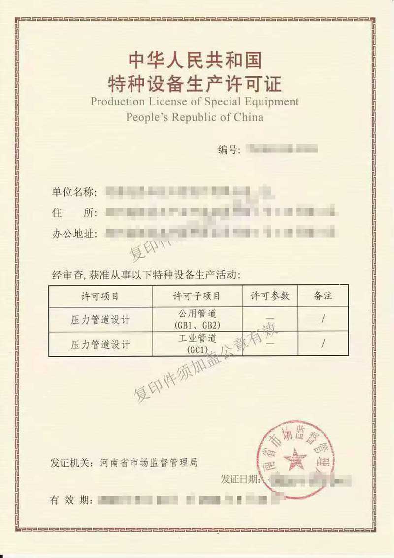 本公司業務范圍包括:特種設備制造許可證、工業產品生產許可證、特種設備設計許可證、特種設備安裝改造維修許可證,壓力管道安裝許可證、生產許可證等咨詢服務。
